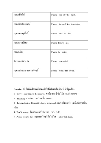 5. Please forgive me. กรุณายกโทษใหฉันดวย That’s all right.