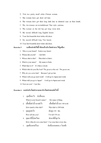 Exercise 6 จงแตงประโยคคําถามและประโยคคําตอบตอไปนี้