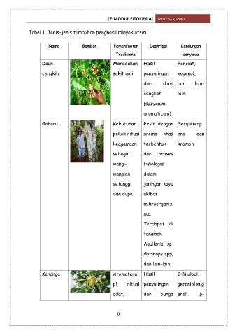 Tabel 1. Jenis-jenis tumbuhan penghasil minyak atsiri