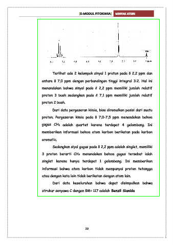 proton 3 buah sedangkan pada 7,1 ppm memiliki jumlah relatif