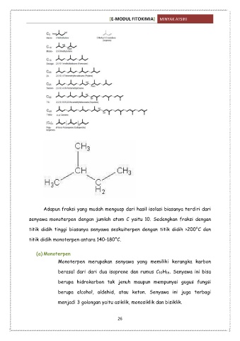 senyawa monoterpen dengan jumlah atom C yaitu 10. Sedangkan fraksi dengan