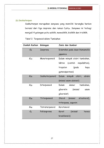 berasal dari tiga isoprene dan rumus C15H24. Senyawa ini terbagi