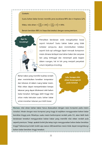 beroktan tinggi pula. Misalnya, suatu mesin berkompresi rendah yaitu 9:1, akan lebih baik