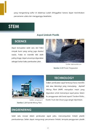 Salah satu inovasi dalam pembuatan aspal yaitu, mencampurkan limbah plastik