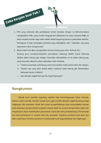1. PbO yang terbentuk dari pembakaran bensin bereaksi dengan 1,2-dibromometana