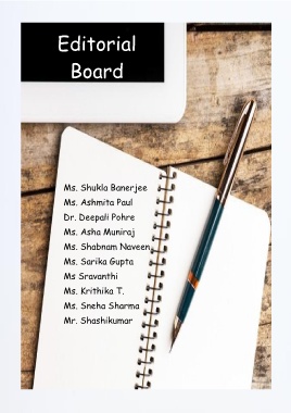 Editorial Board Ms. Shukla Banerjee Ms. Ashmita Paul Dr. Deepali Pohre Ms. Asha Muniraj Ms. Shabnam Naveen Ms. Sarika Gupta Ms Sravanthi Ms. Krithika T. Ms. Sneha Sharma Mr. Shashikumar