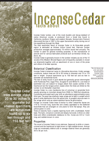 stock etc Incense Cedar is generally known in in the the lumber industry as one of