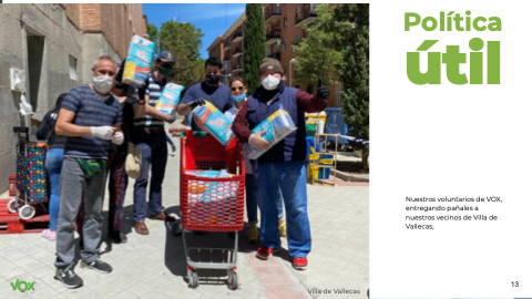 Nuestros voluntarios de VOX, entregando pañales a nuestros vecinos de Villa de Vallecas,