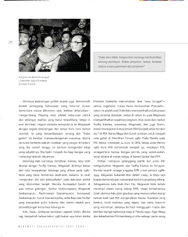 mengambang. Floating mass adalah keharusan politik yang teramat dominan, tetapi di tahun itu pula megawati