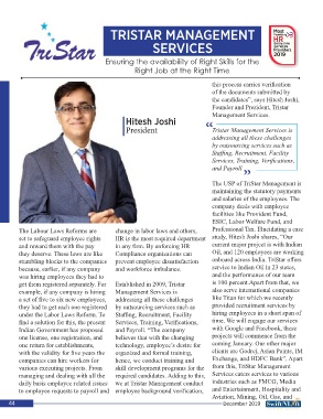 set to safeguard employee rights HR is the most required department study, Hitesh Joshi shares, “Our