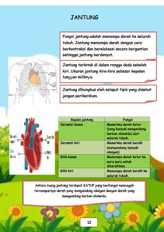 kiri. Ukuran jantung kira-kira sebesar kepalan
