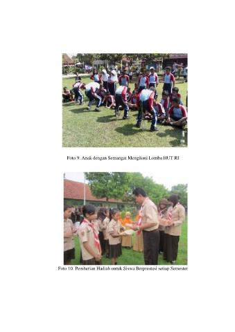 Foto 9. Anak dengan Semangat Mengikuti Lomba HUT RI Foto 10. Pemberian Hadiah untuk Siswa Berprestasi setiap Semester