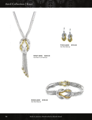 Anvil Collectionn | Knot A n v il Col le ct io F3533-A000 $110.00 Anvil Knot Earrings N3527-A000 $225.00 Anvil Knot 17.25” Necklace B3529-A000 $195.00 Anvil Knot Bracelet 14 Made in America. Handcrafted in Rhode Island.