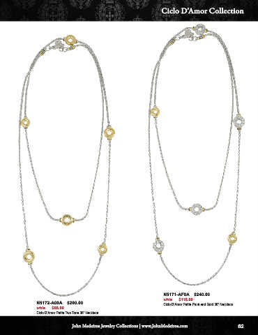 Ciclo D’Amor Collection N5171-AF0A $240.00 whls $118.00 N5172-A00A $200.00 Ciclo D’Amor Petite Pavé and Gold 36” Necklace whls $88.00 Ciclo D’Amor Petite Two Tone 36” Necklace John Medeiros Jewelry Collections | www.JohnMedeiros.com 62