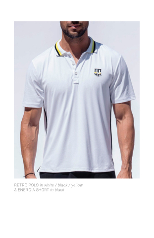 RETRO POLO in white / black / yellow & ENERGIA SHORT in black