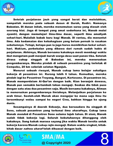 seorang kiai. Juga di tempat yang amat sederhana ini, Manab mulai