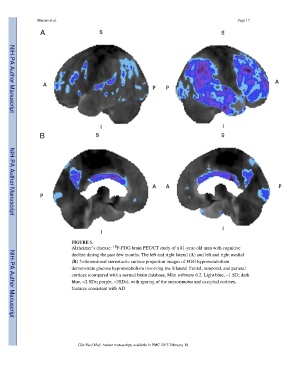 (B) 3-dimensional stereotactic surface projection images of FDG hypometabolism
