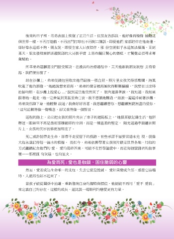弟弟突然蹲下身,他輕聲 說道 :" 我會好好活著,我想繼續想你、想繼續無窮無盡的愛你。
