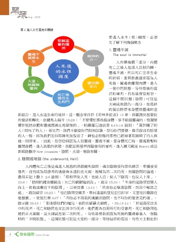 新結合,進入永遠生命的境界。這一觀念來自於《哥林多前書》15 章,保羅講到基督徒