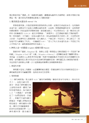末世論、以及神在人心和世界中的計劃。聖經中的國度概念不僅指向未來的榮耀和完全