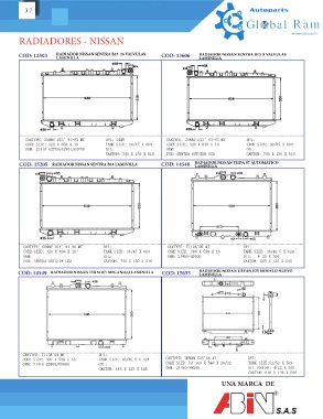 COD: 15205 RADIADOR NISSAN SENTRA B14 LAMINILLA COD: 14548 RADIADOR NISSAN TIIDA 07 AUTOMATICO