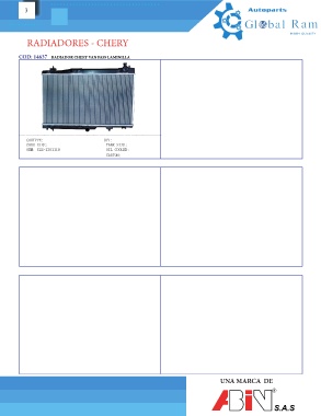 3 RADIADORES - CHERY COD: 14637 RADIADOR CHERY VAN PASS LAMINILLA CARTYPE: DPI: CARTYPE: DPI: TANK SIZE: CORE SIZE: TANK SIZE: CORE SIZE: OEM: S22-1301110 OIL COOLER: OEM: S22-1301110 OIL COOLER: CARTON: CARTON: UNA MARCA DE