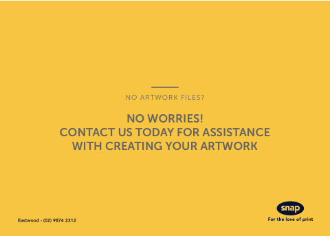 NO ARTWORK FILES? NO WORRIES! CONTACT US TODAY FOR ASSISTANCE WITH CREATING YOUR ARTWORK Eastwood - (02) 9874 2212