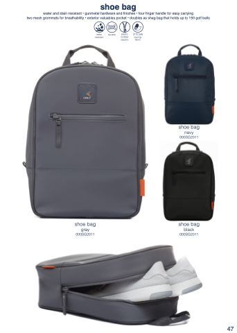 two mesh grommets for breathability • exterior valuables pocket • doubles as shag bag that holds up to 150 golf balls