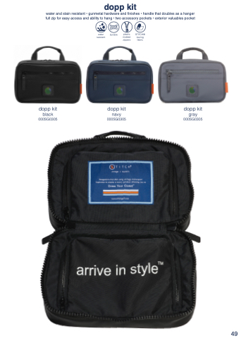 water and stain resistant • gunmetal hardware and finishes • handle that doubles as a hanger full zip for easy access and ability to hang • two accessory pockets • exterior valuables pocket