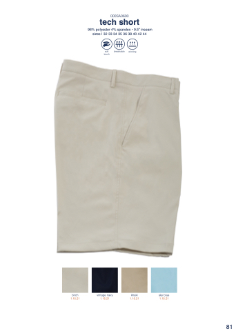 soft touch breathable wicking 000SA0600 tech short 96% polyester 4% spandex • 9.5” inseam sizes | 32 33 34 35 36 38 40 42 44 birch vintage navy khaki sky blue 1.15.21 1.15.21 1.15.21 1.15.21 81