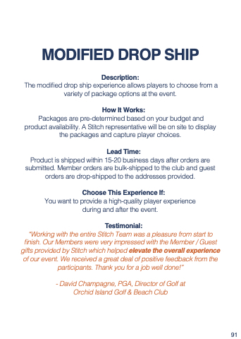 “Working with the entire Stitch Team was a pleasure from start to finish. Our Members were very impressed with the Member / Guest gifts provided by Stitch which helped elevate the overall experience of our event. We received a great deal of positive feedback from the participants. Thank you for a job well done!”