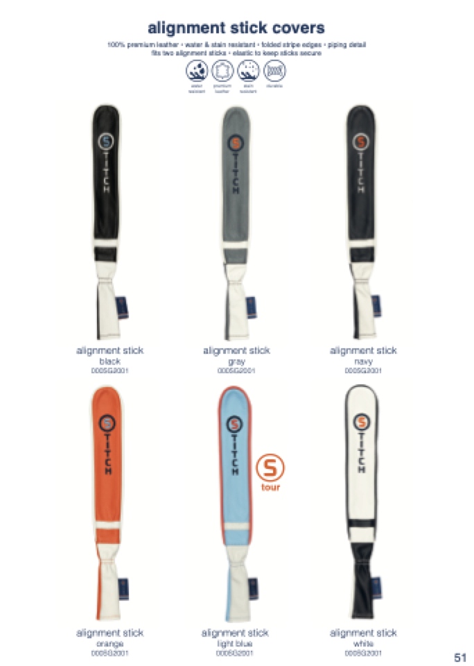 100% premium leather • water & stain resistant • folded stripe edges • piping detail fits two alignment sticks • elastic to keep sticks secure