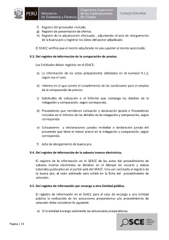 9.3. Del registro de información de la comparación de precios.