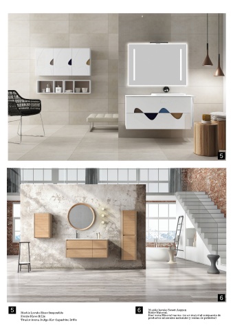 5 6 5 6 Mueble lavabo Sweet Asppen Mueble Lavabo Blues Suspendido Roble Natural. Frente Nieve Brillo Encimera Mineralmarmo (es un material compuesto de productos minerales naturales y resina de poliéster) Tirador Arena-Indigo-Ker-Capuchino Brillo