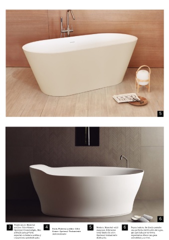 3 acrilico. Color blanco. 4 5 Modern. Material solid 6 Papua bañera. Su diseño permite