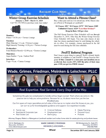 Winter Group Exercise Schedule Want to Attend a Fitness Class?