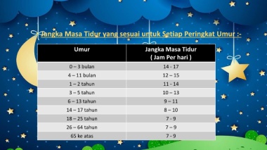 • Jangka Masa Tidur yang sesuai untuk Setiap Peringkat Umur :-