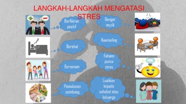 Langkah untuk mengatasi stres LANGKAH-LANGKAH MENGATASI STRES Berfikiran Dengar positif muzik Kaunseling Berehat Fahami punca Bersenam stres Luahkan Pemakanan kepada seimbang sahabat atau keluarga