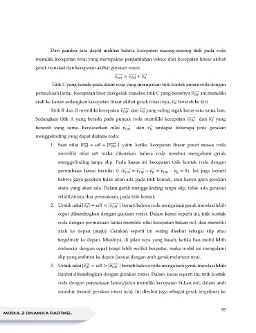 1. Saat nilai | ⃗⃗⃗| = = | ⃗⃗⃗⃗⃗⃗ | yaitu ketika kecepatan linear pusat massa roda