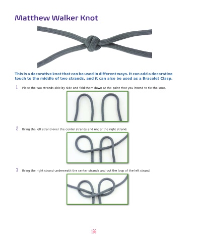 3 Bring the right strand underneath the center strands and out the loop of the left strand.