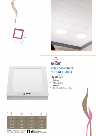 LED COMMERCIAL SURFACE PANEL Sparkle t Ofces t Filling Station t Airports t Commercial Places Etc. Voltage : 120-300VAC, PF : >0.9, CRI : >80%, CCT : 3000K/6500K