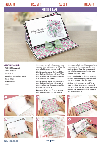 5. Download and print the free Charisma and, using the Bouquet die, cut one and mat onto the card using foam pads.