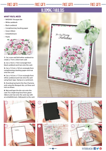 5. Download and print the free Charisma and, using the Bouquet die, cut three and trim as shown.