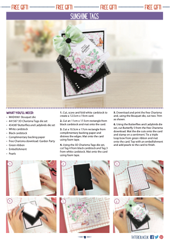 4. Using the 3D Charisma Tags die set, cut Tag 4 from black cardstock and Tag 3 from white cardstock. Mat onto the card using foam tape.