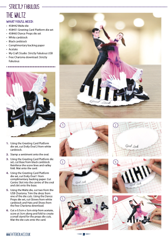 6. Cut a 0.5cm x 5cm strip from acetate, score at 3cm along and fold to create a small stand for the props die cuts. Mat the die cuts onto the card.