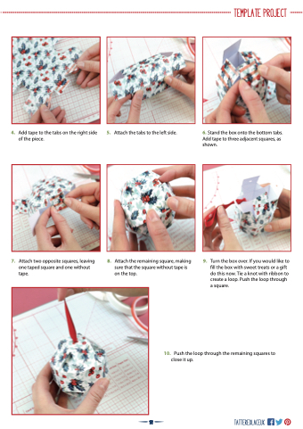 9. Turn the box over. If you would like to fill the box with sweet treats or a gift do this now. Tie a knot with ribbon to create a loop. Push the loop through a square.