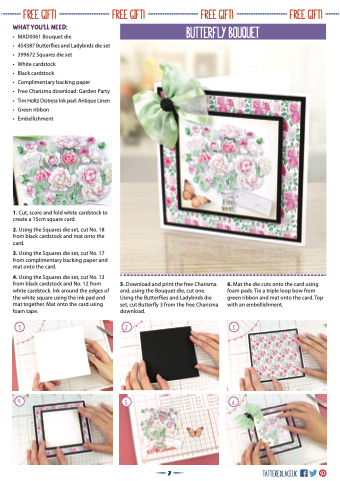 5. Download and print the free Charisma and, using the Bouquet die, cut one. Using the Butterflies and Ladybirds die set, cut Butterfly 3 from the free Charisma download.