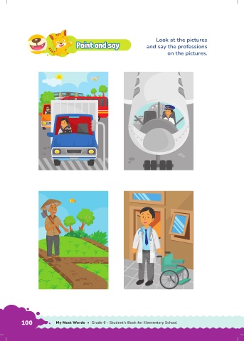 Look at the pictures oint and say oint and say P P P oint and say and say the professions Point and say on the pictures. 100 My Next Words • Grade 6 - Student's Book for Elementary School