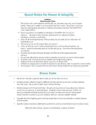 All for the Glory of God - Quest is committed to a culture of Honor!