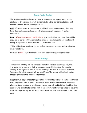 class and pay the drop fee. An audit form can be obtained in the office at the Quest
